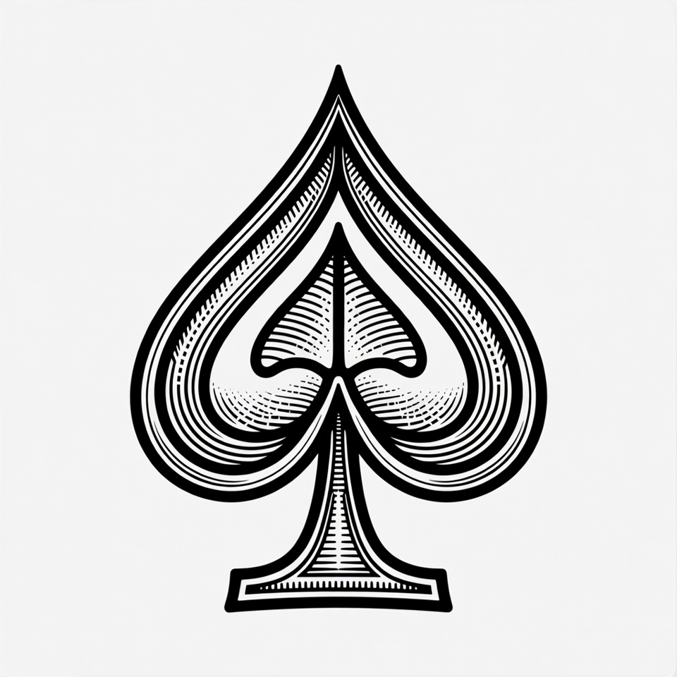 black spade, card suit, casino, detailed, engraved, gaming, graphic, icon, illustration, isolated, line art, outline, playing cards, poker, spade symbol, symbol, transparent background, vector, spades