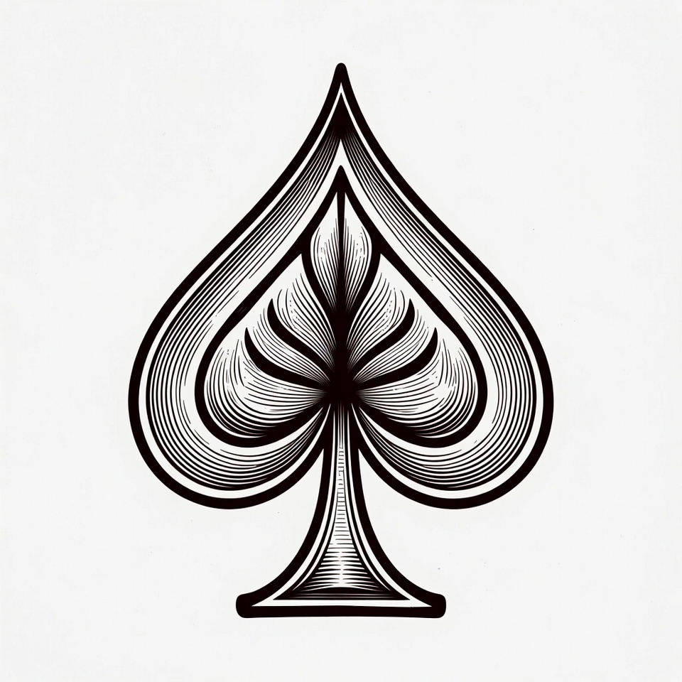 ace spades, black ink, card suit, casino, contour lines, detailed design, gaming, illustration, isolated background, line art, playing cards, poker, spade symbol, vector, spades