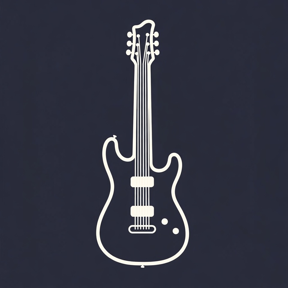 clipart, double cutaway, guitar, illustration, isolated background, knobs, line art, minimalist, musical instrument, pickups, rock guitar, six strings, vector art, white outline, electric guitar