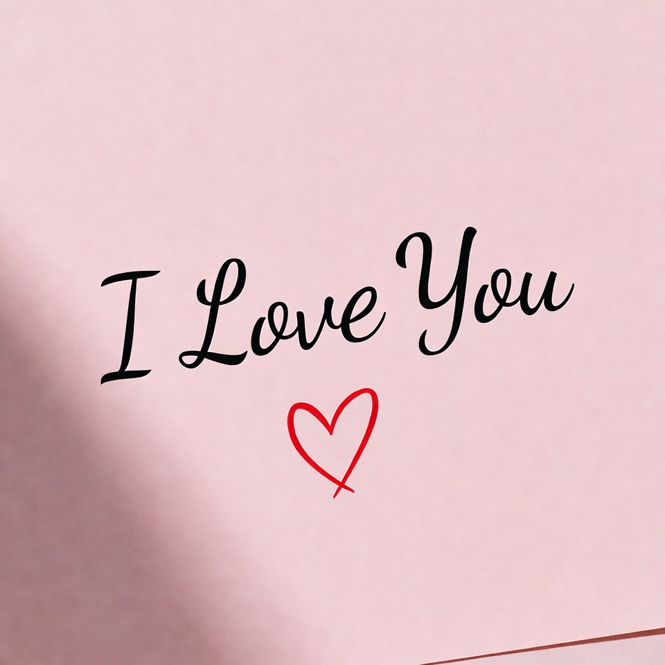 affection, cursive writing, graphic design, greeting card, heart, isolated background, love, love message, pink background, red heart, romantic text, valentine, I love you