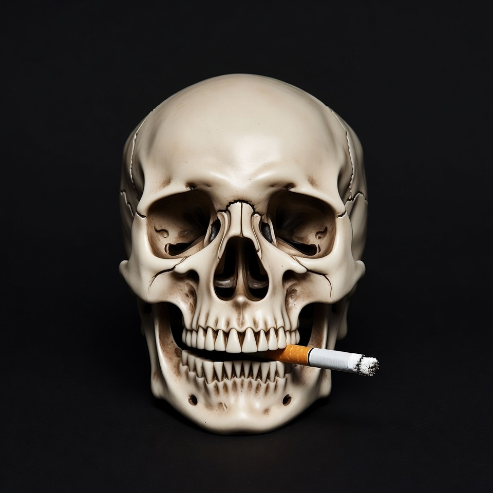 Skull smoking cigarette