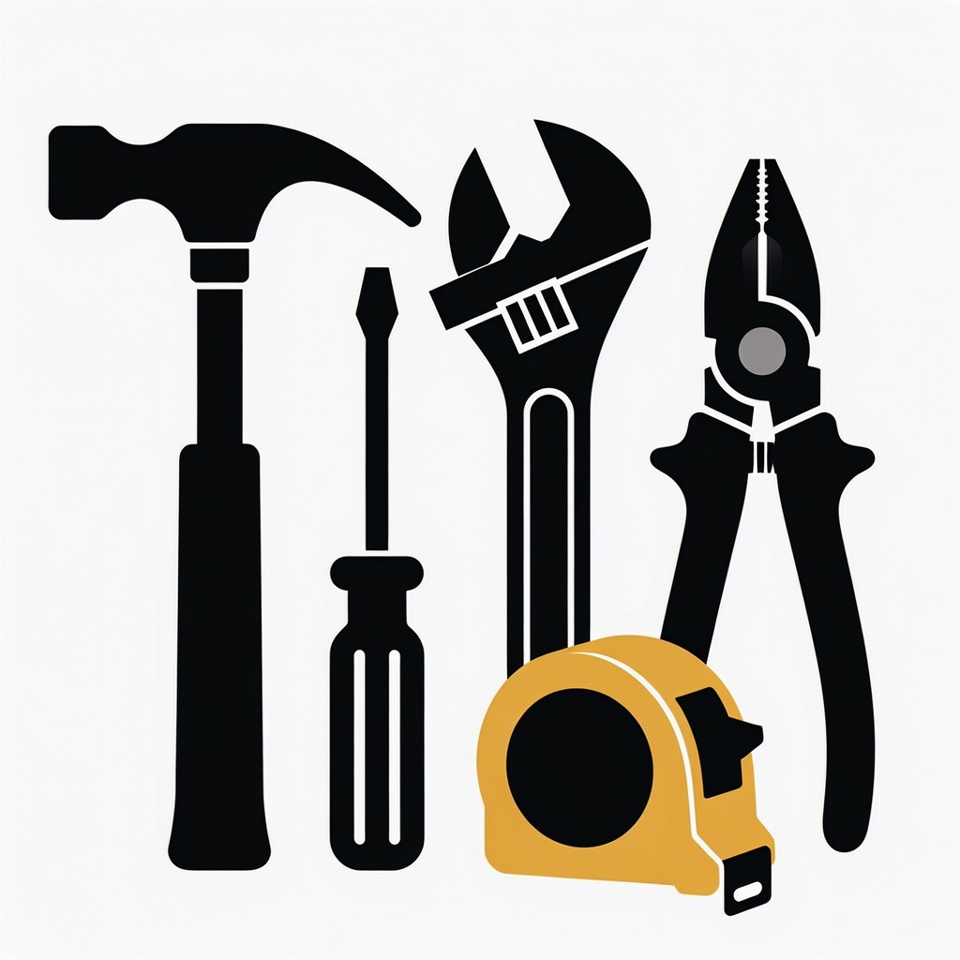 DIY tools, black silhouette, clipart, construction tools, hand tools, hardware, icons, illustration, isolated background, measuring tape, pliers, repair tools, screwdriver, tape measure, tools, vector graphics, wrench, hammer