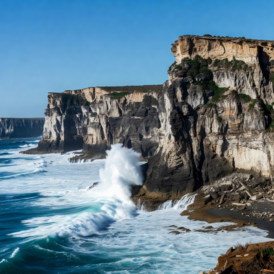 Ocean Waves Crashing Against Cliffs