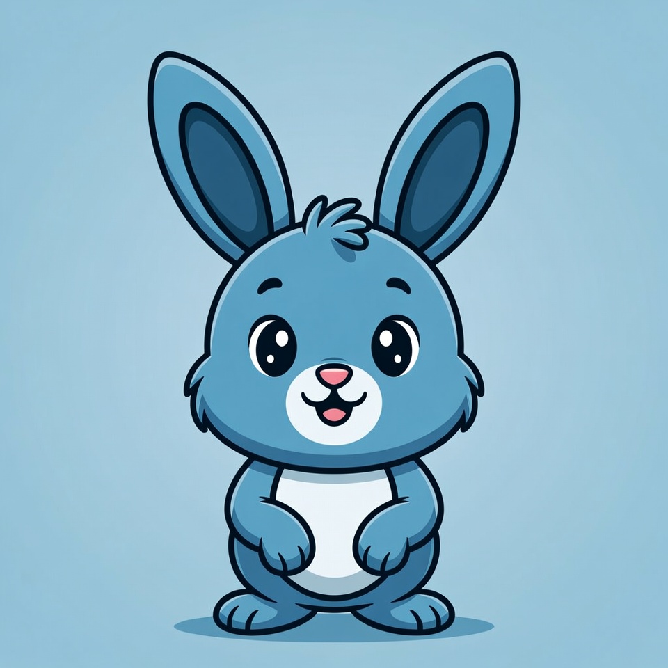 adorable rabbit, animal, big eyes, blue bunny, cartoon bunny, clipart, floppy ears, fun character, illustration, isolated background, kawaii, rabbit, smiling bunny, vector art, cute bunny