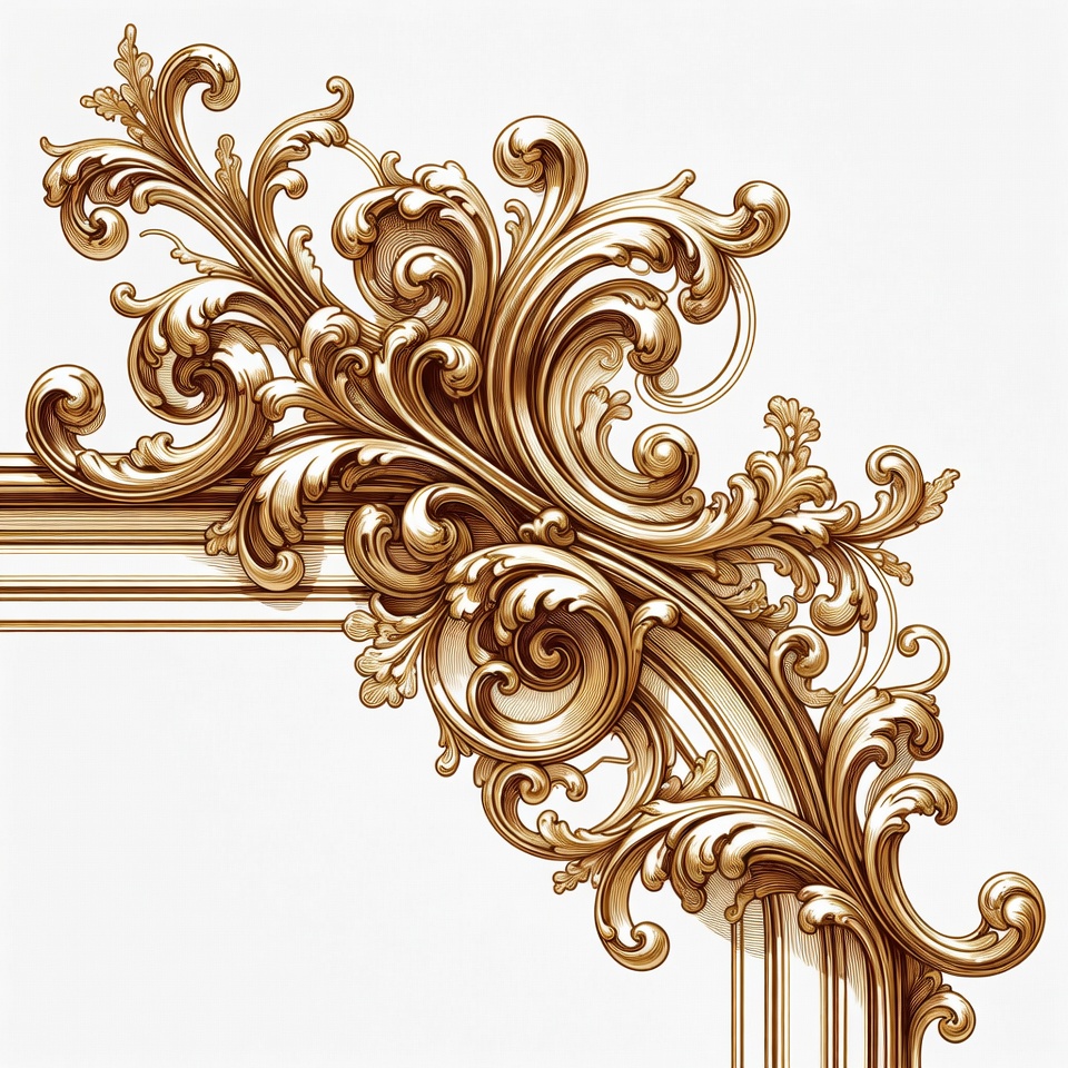 artistic frame, baroque frame, classical frame, clipart, corner frame, decorative border, decorative element, detailed filigree, elegant border, fancy border, filigree design, floral motifs, gilded frame, gold ornament, golden frame, illustration, intricate design, isolated frame, luxury frame, rococo style, scrollwork, swirling scrolls, vector art, vintage border, white background, ornate frame