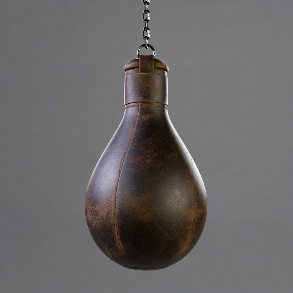 boxing bag, boxing equipment, brown leather, chain suspension, combat sports, fitness gear, gym equipment, hanging bag, heavy bag, isolated background, leather bag, martial arts, speed bag, training bag, punching bag