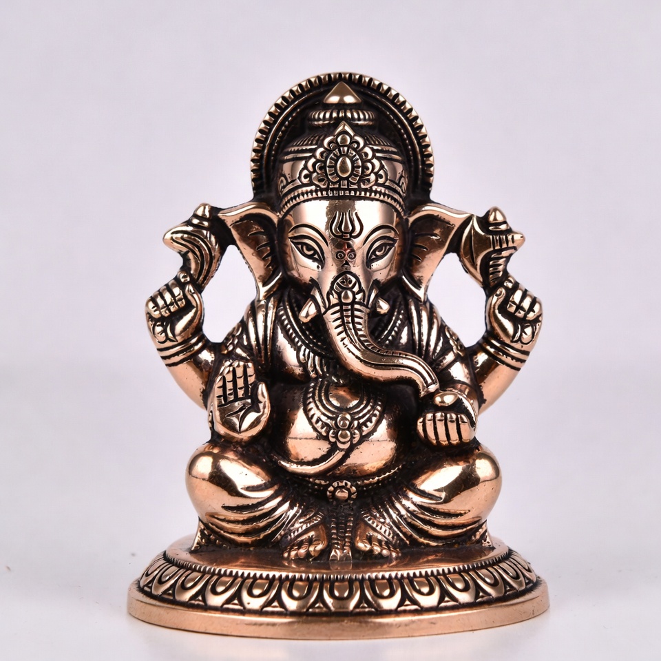 Ganesh, Hindu deity, Indian god, brass idol, bronze statue, crown, dhoti, elephant god, elephant head, isolated background, jewelry, modak, multiple arms, ornate statue, religious statue, remover of obstacles, sculpture, sitting Ganesha, trunk, white background, Ganesha