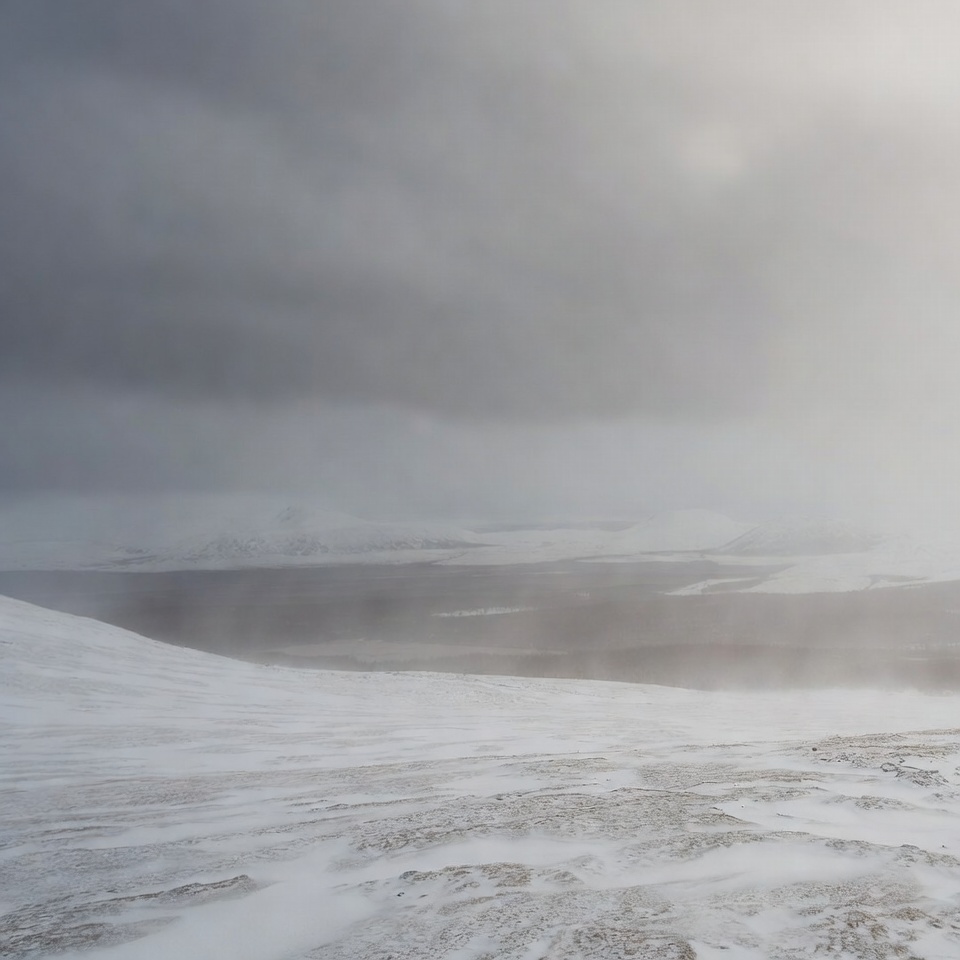 arctic vista, blizzard, frozen terrain, glacial valley, gray clouds, icy slopes, mountains, overcast sky, powder snow, remote wilderness, snow hills, snowstorm, windy weather, winter scene, snowy landscape