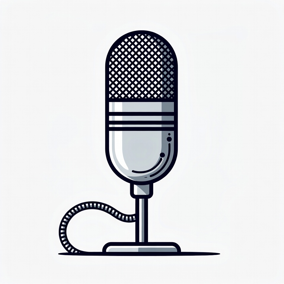 audio, black and white, clipart, coiled cord, equipment, graphic, illustration, isolated background, line art, mesh head, metallic body, mic, music, performance, podcast, recording, sound, speech, stand, studio mic, vector, vocal, microphone