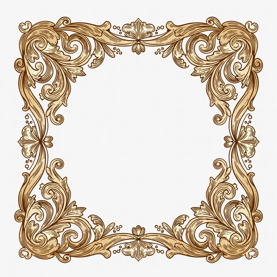 baroque frame, border design, clipart, decorative border, decorative element, elegant frame, empty frame, filigree design, floral border, floral frame, frame clipart, gold filigree, gold ornament, illustration, leaf motif, ornamental frame, ornate border, rococo style, square frame, swirl pattern, vector frame, vine design, vintage frame, white background, gold frame