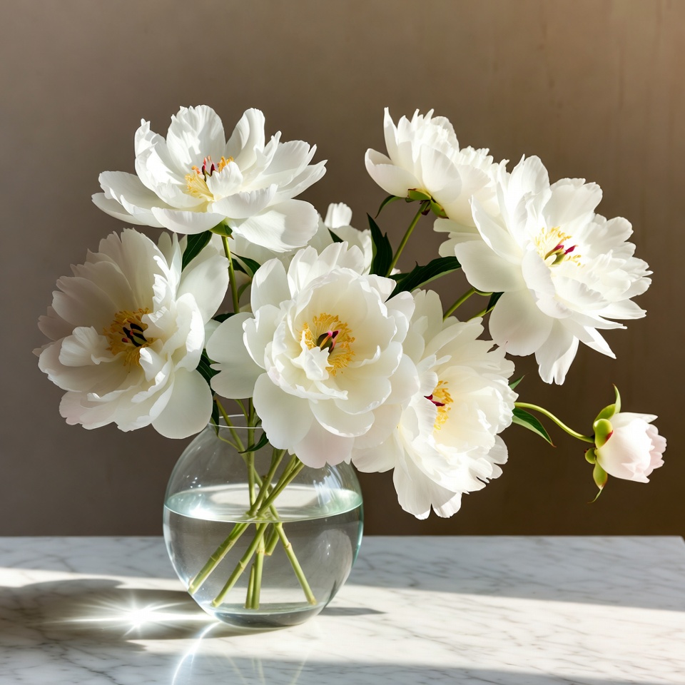 White Peonies in Glass Vase