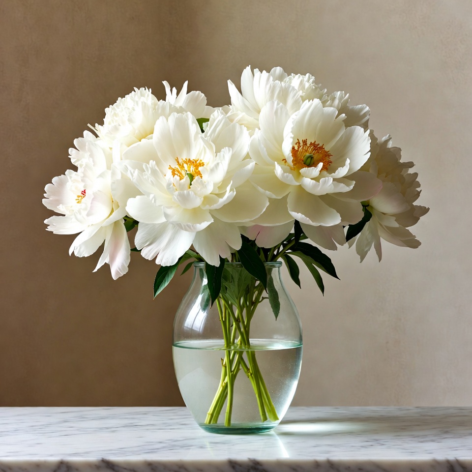 White Peonies in Glass Vase