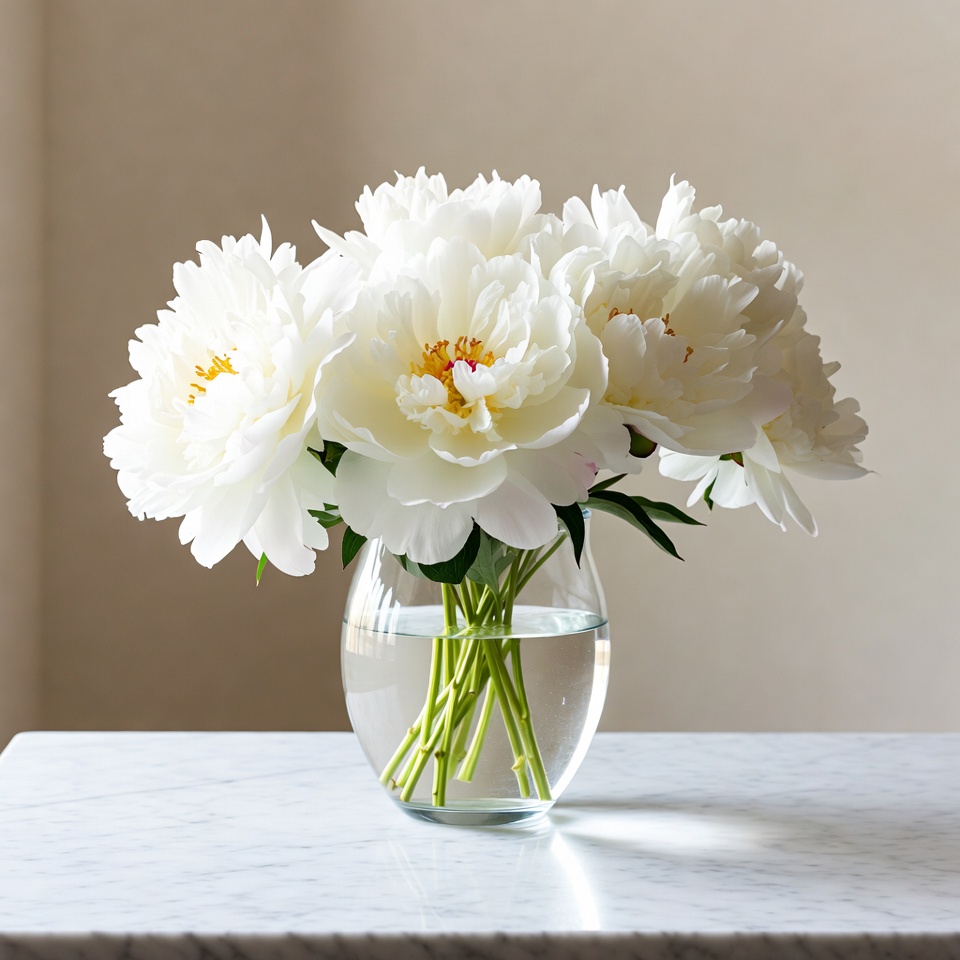 White Peonies in Glass Vase
