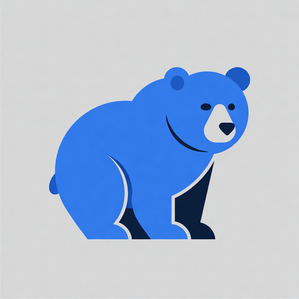 A simple blue cartoon bear stands on all fours against a light gray background. The bear features a rounded body, small ears, black eyes, and a white muzzle. It is depicted in a flat vector illustration style with clean lines and solid colors.