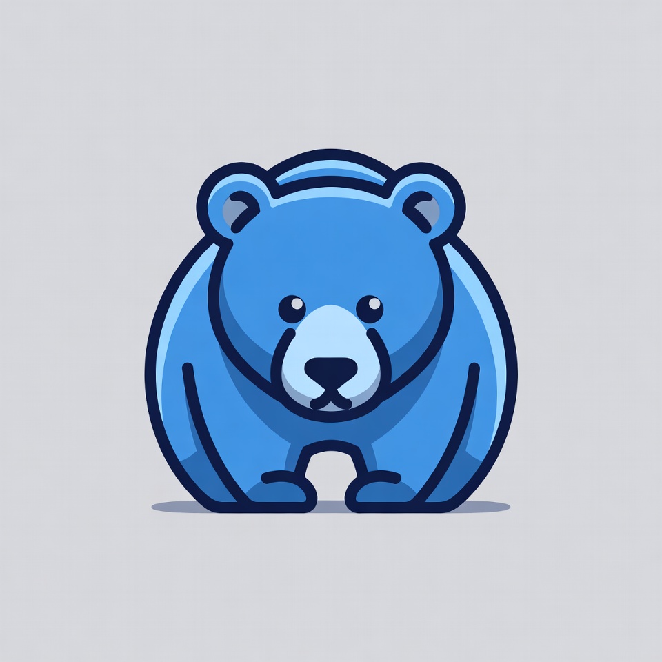 A cute blue bear illustration faces forward with big expressive eyes and rounded features. It has thick outlines and a simple design on a light gray isolated background. The bear stands on four legs with a chubby body and friendly expression.