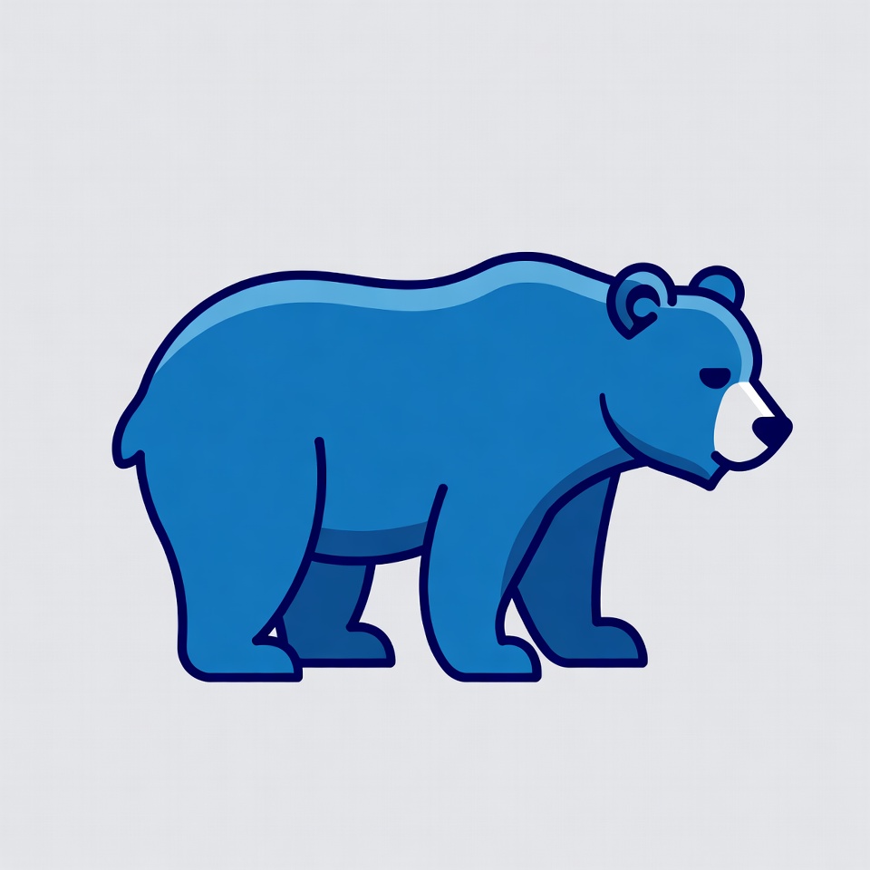 A simple blue line art illustration of a bear stands on all fours against a light gray background. The bear features a white muzzle, dark eyes, and rounded ears. It is depicted in a side profile view with clean, bold outlines.
