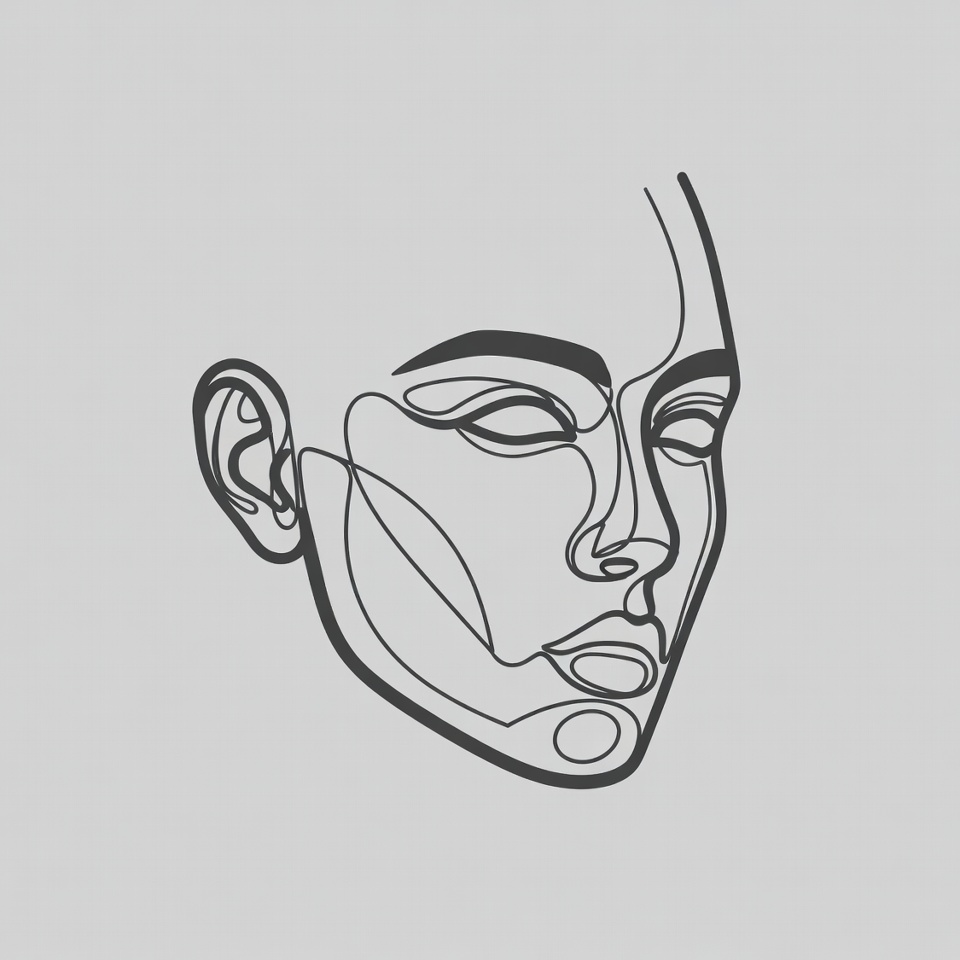 abstract, artistic face, black lines, closed eyes, contour lines, drawing, face, gray background, human face, illustration, isolated background, lips, minimalist, nose, one line, portrait, profile view, simple illustration, vector art, line art