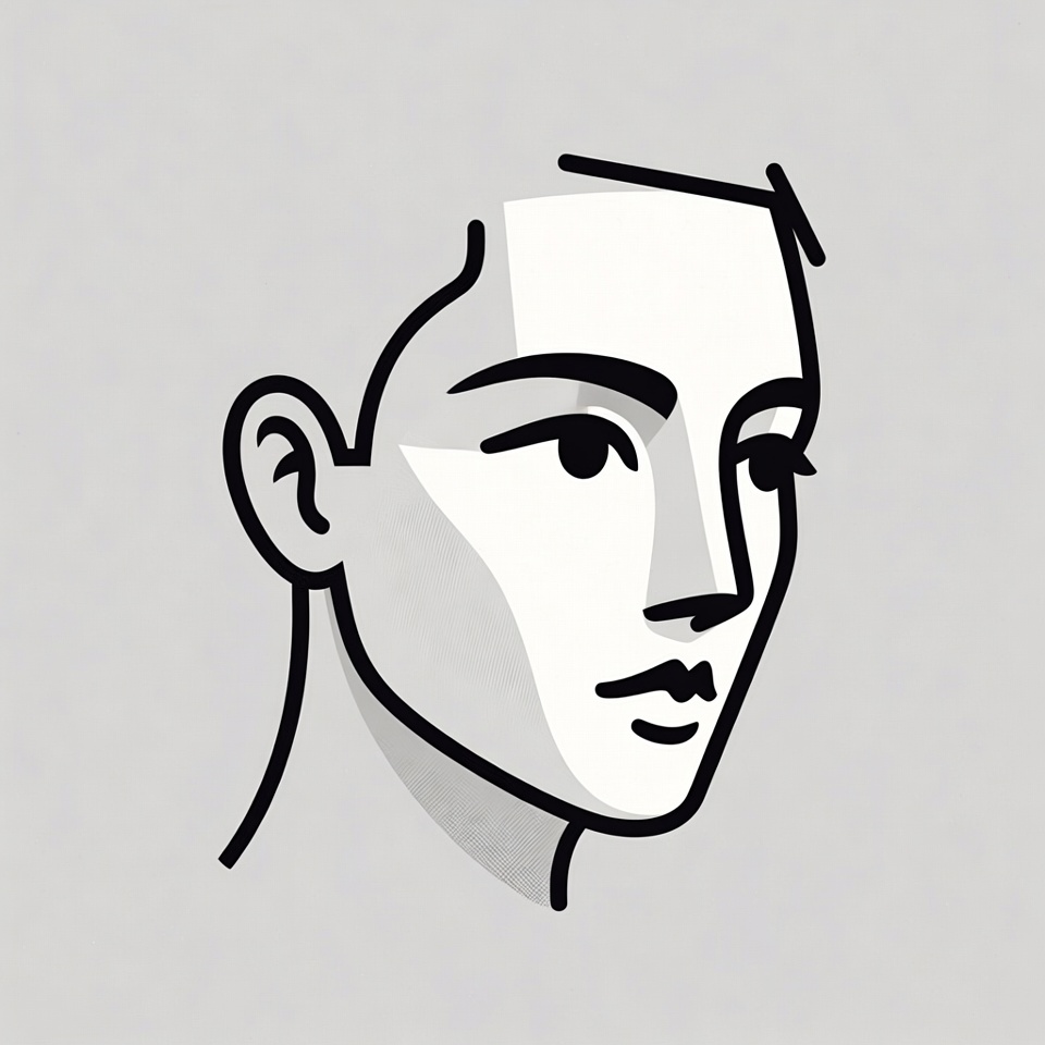 black lines, drawing, face, female, graphic design, gray background, head silhouette, illustration, line art, minimalist, modern art, portrait, profile, short hair, side view, simple illustration, stylized, vector art, woman