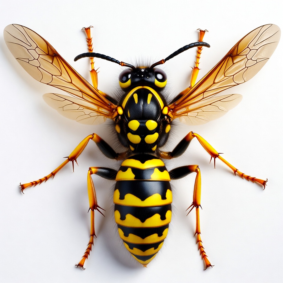 black yellow stripes, bug, compound eyes, detailed insect, flying insect, hornet, insect, isolated background, legs extended, macro view, nature, striped body, wasp, white background, wings spread, yellow jacket