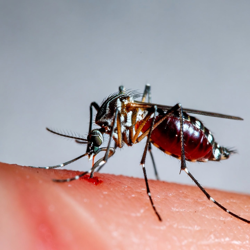Mosquito biting human finger