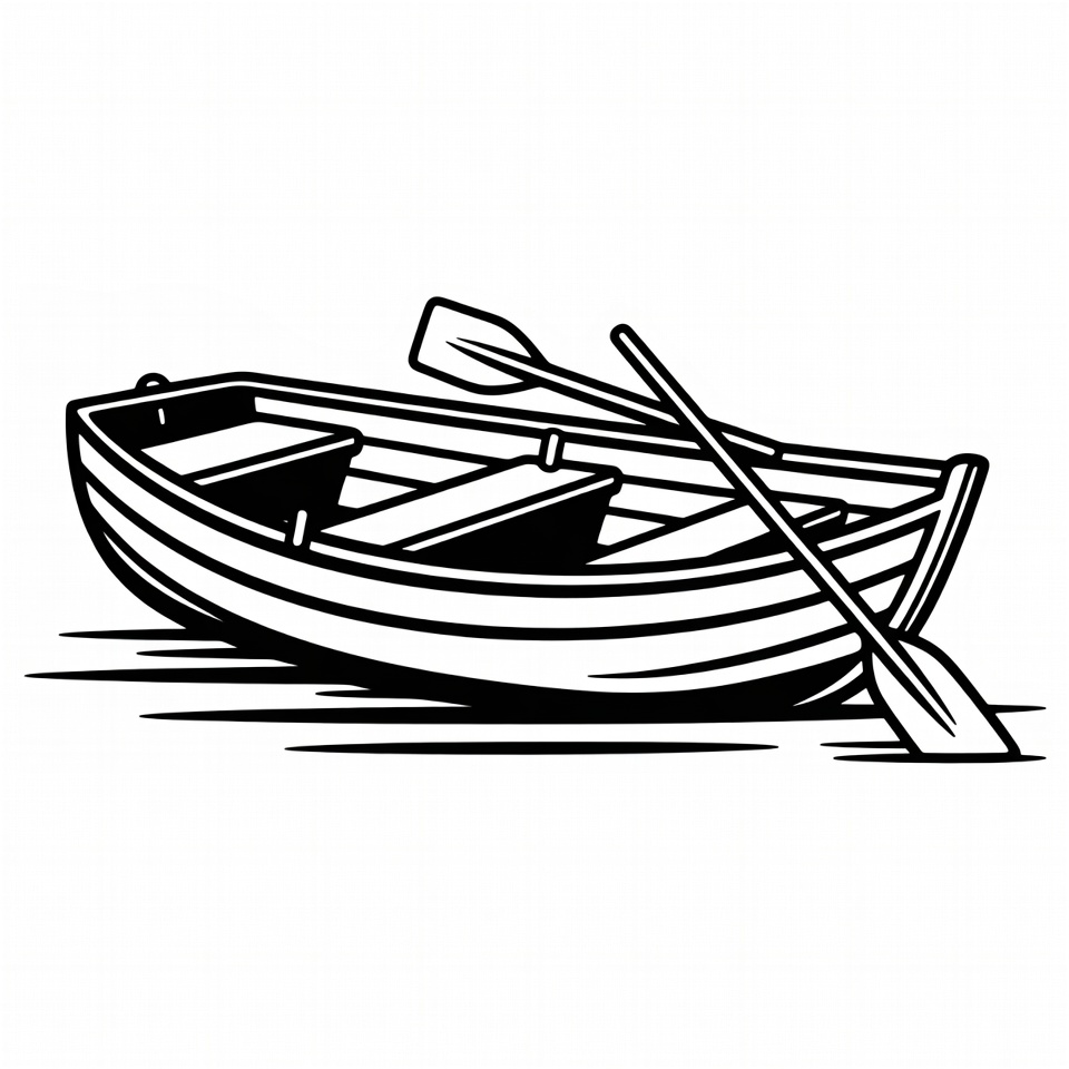black and white, boat, canoe, clipart, fishing boat, illustration, isolated background, line art, nautical, oars, paddle, rowboat oars, rowing, sketch, small boat, vector, water, wooden boat, rowboat