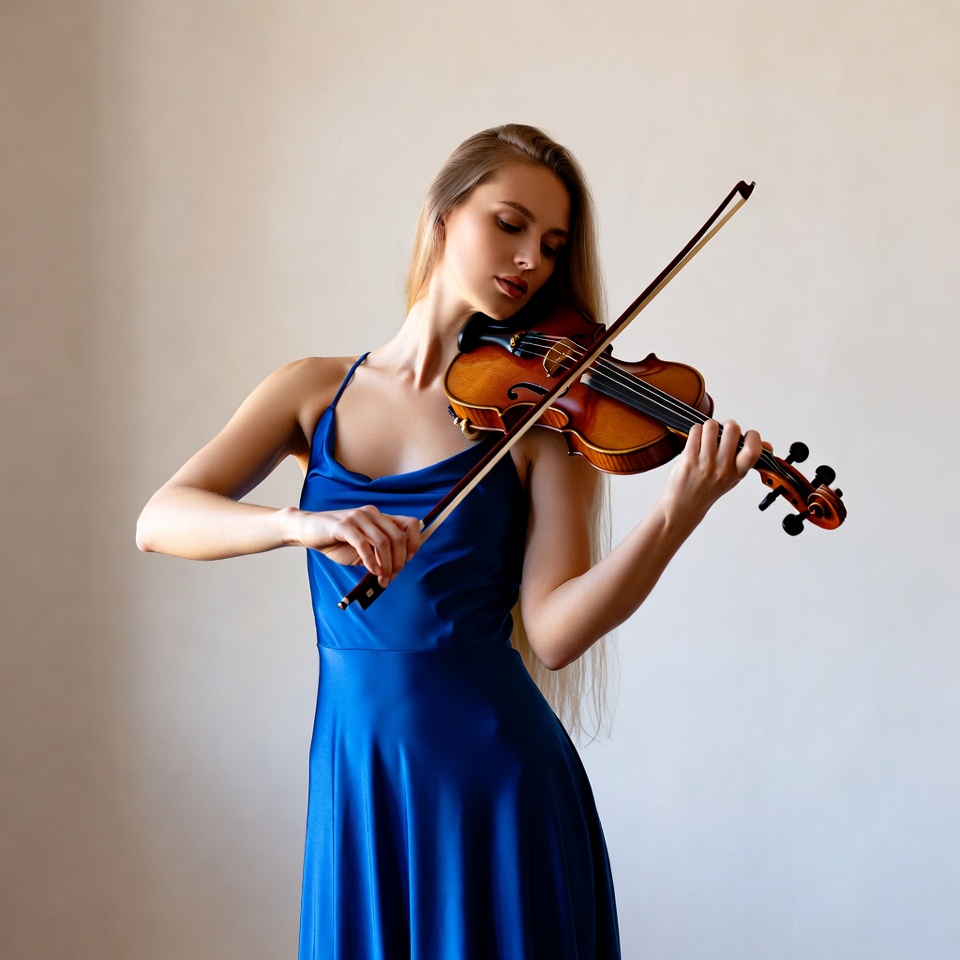 Woman playing violin in blue dress