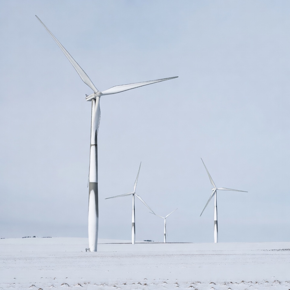 Wind Turbines in Snowy Field