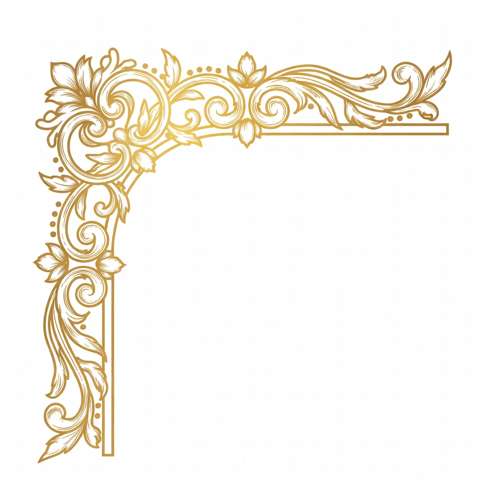 artistic border, baroque style, clipart, corner element, decorative frame, elegant border, filigree, floral border, floral design, flowers, foliage, golden frame, graphic design, illustration, isolated background, leaves, luxury decor, ornate corner, swirl pattern, transparent background, vector art, vines, vintage ornament, gold border