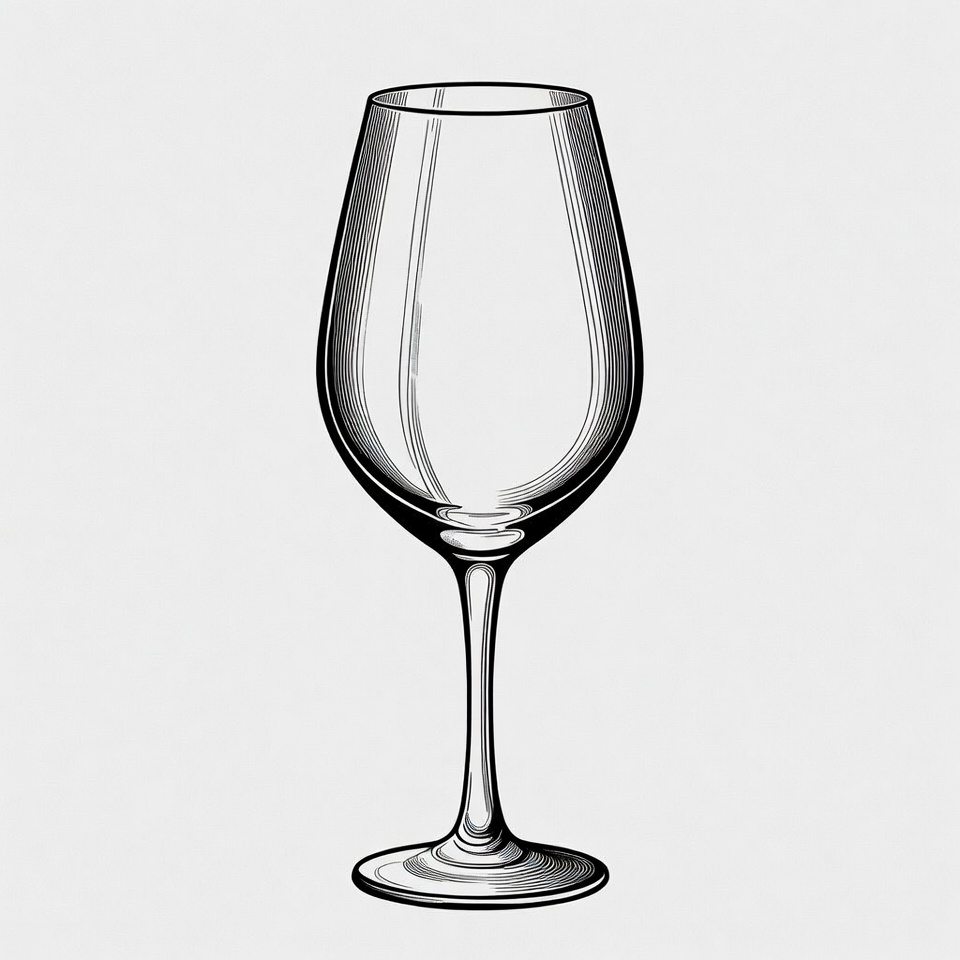 drawing, drinkware, elegant glass, empty glass, glassware, goblet, illustration, isolated background, line art, simple illustration, sketch, stemware, transparent glass, vector, white wine glass, wine glass