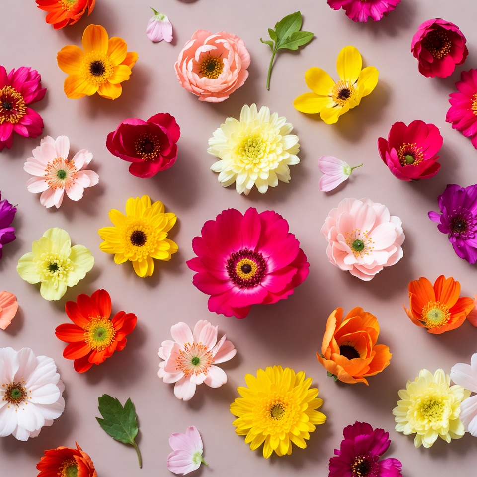 Colorful flowers scattered on gray background