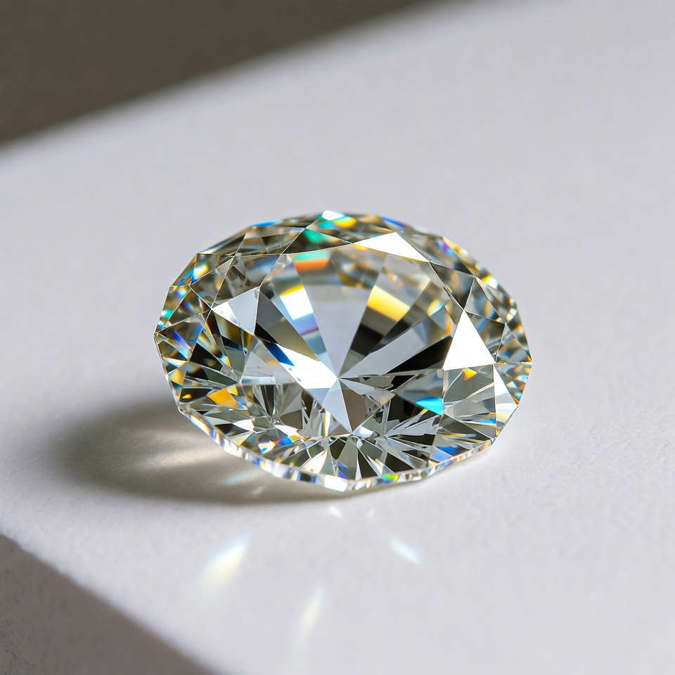 Sparkling Diamond on White Surface
