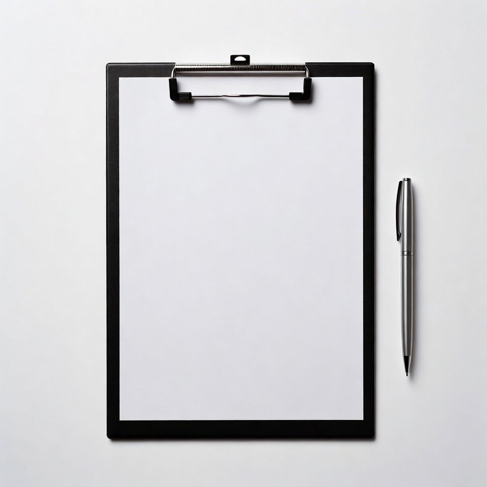black clipboard, blank paper, blank sheet, clip board, isolated background, office supplies, pen, silver pen, white background, white paper, writing tool, clipboard