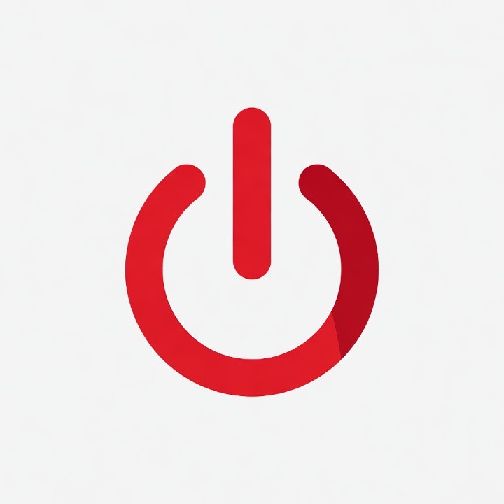 A bright red power on button icon features a white vertical line inside a circular outline. The design is simple and bold against a plain white background. It is a vector-style graphic commonly used for electronics and devices.