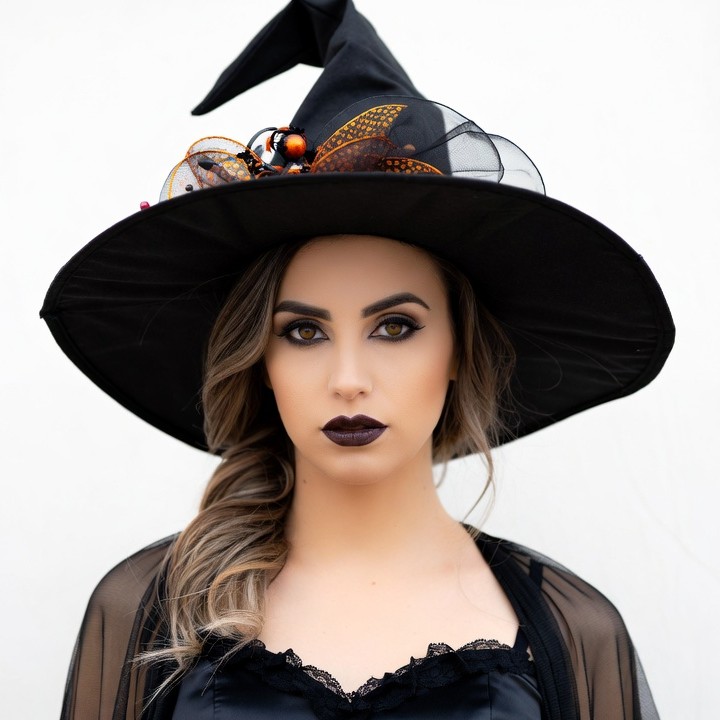 Woman wearing witch hat