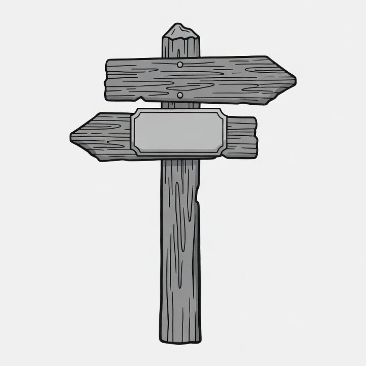 blank sign, clipart, directional sign, gray wood, illustration, isolated background, opposite directions, post, sign board, two signs, vector art, weathered wood, wood texture, wooden sign, signpost