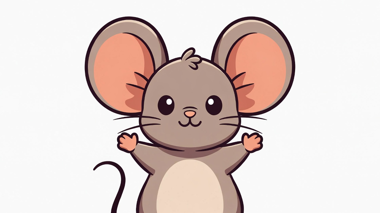 adorable animal, animal illustration, big ears, brown mouse, chibi mouse, clipart mouse, cute mouse, fun mouse, gray mouse, happy mouse, isolated mouse, kawaii mouse, mouse character, mouse illustration, outstretched arms, pink ears, smiling mouse, vector mouse, white background, cartoon mouse