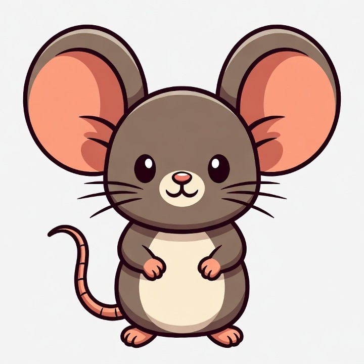 adorable animal, animal illustration, big ears, big eyes, brown mouse, cartoon mouse, chibi mouse, clipart mouse, furry mouse, isolated background, kawaii mouse, long tail, mouse illustration, pink ears, pink paws, rodent, smiling mouse, vector mouse, white belly, cute mouse