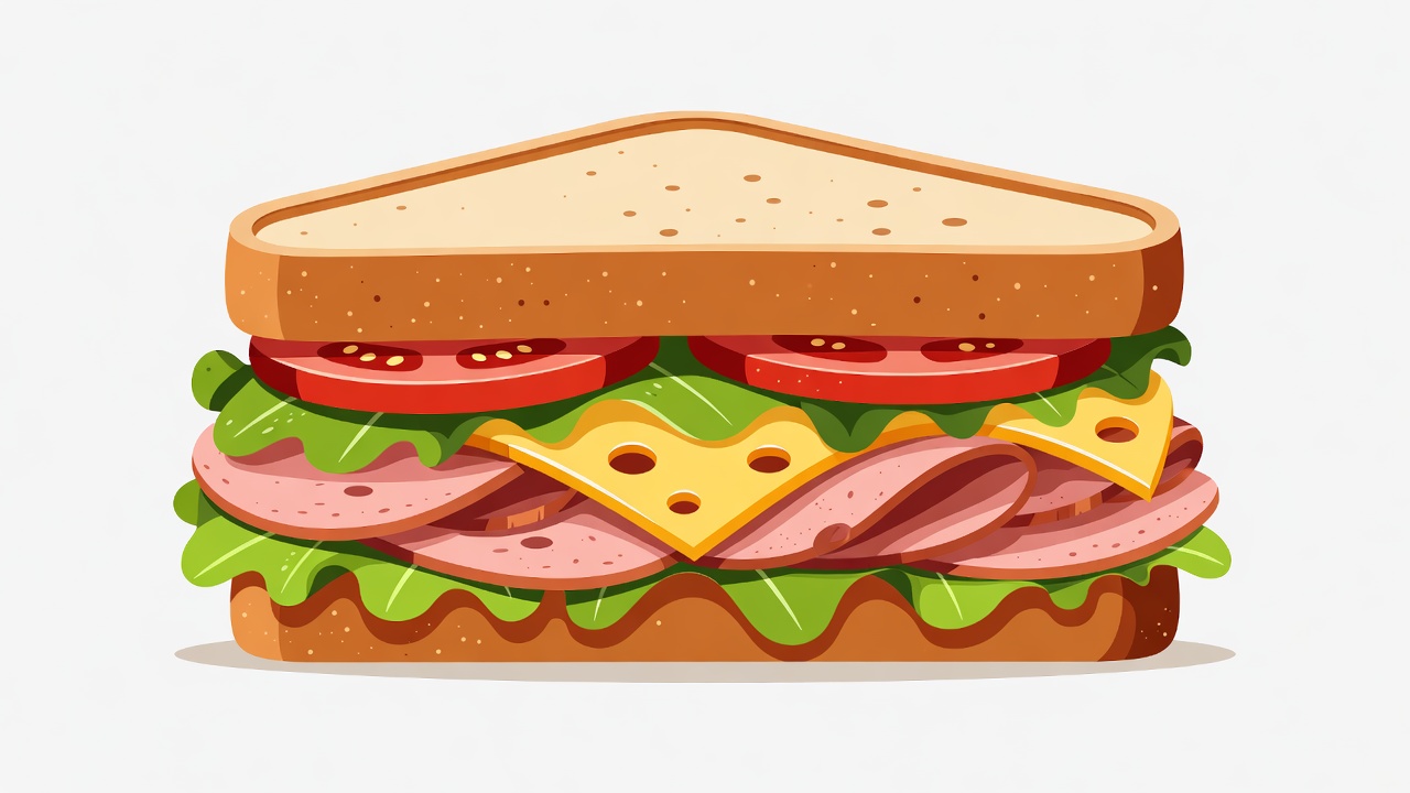 bread, cartoon, cheese, cheese sandwich, clipart, food, fresh, ham, ham sandwich, illustration, isolated background, layered, lettuce, lunch, meal, snack, tasty, tomato, vector, sandwich