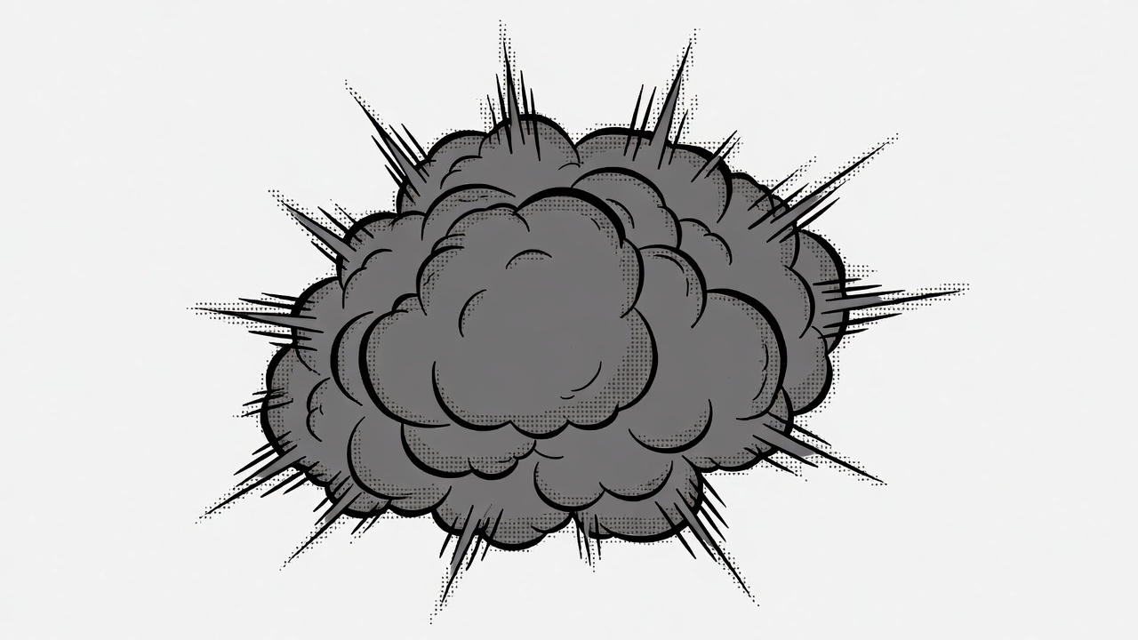 A black comic-style explosion cloud with jagged spikes radiates outward on a white isolated background. The illustration features thick outlines and shaded gray tones typical of cartoon effects. It is centered and ready for use in graphics or designs.