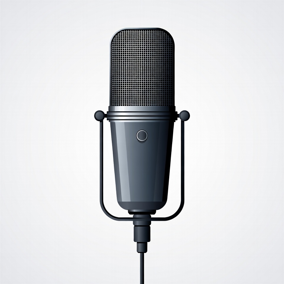 audio equipment, black microphone, clipart, condenser microphone, isolated background, microphone stand, music equipment, podcast microphone, recording mic, silver grille, sound device, studio mic, vector illustration, vocal mic, microphone