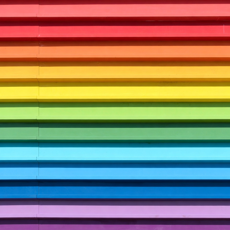 abstract pattern, blue, bright hues, chromatic gradient, color blocks, colorful slats, gradient, green, horizontal stripes, orange, purple, rainbow wall, red, shutter, spectrum, striped pattern, vibrant colors, wall slats, yellow, rainbow