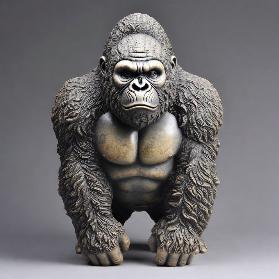 animal sculpture, ape, bronze sculpture, clay sculpture, detailed sculpture, fierce gorilla, furry gorilla, isolated background, muscular gorilla, powerful pose, primate, sculpture, silverback gorilla, statue, wild animal, gorilla