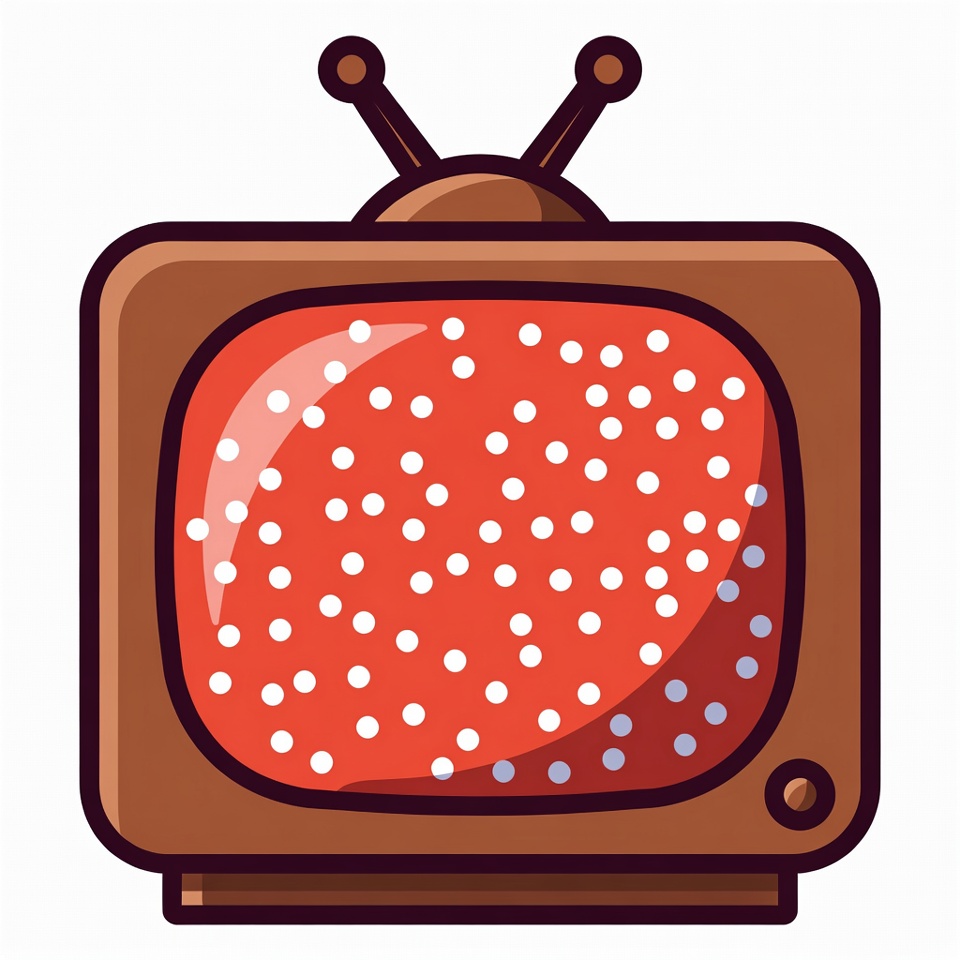 A simple cartoon illustration of a retro wooden television set with rabbit ear antennas. The screen displays a glossy red background covered in white polka dots. It features a brown frame and stands isolated on a white background.