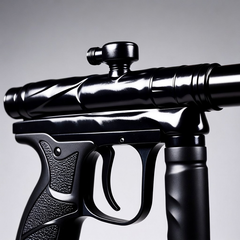 air tank, airsoft gun, barrel, black gun, closeup, gaming weapon, grip, isolated background, paintball equipment, paintball marker, sports gear, tactical marker, trigger, weapon, paintball gun