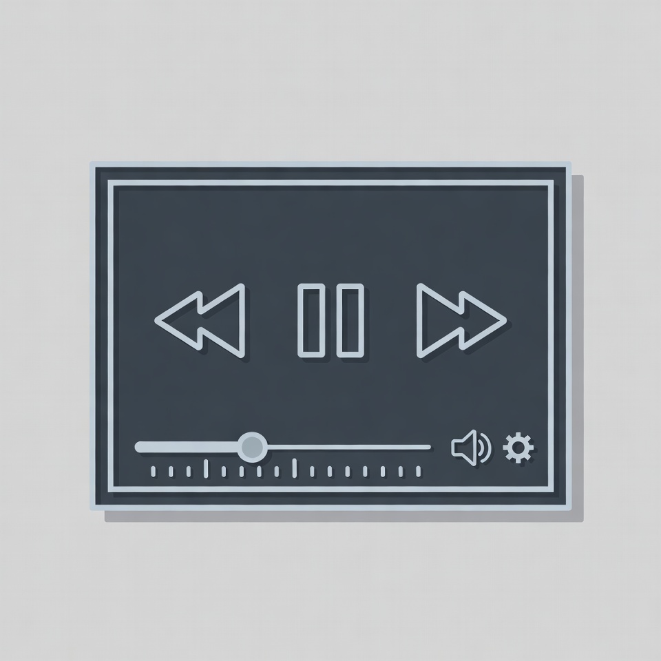 UI element, digital icon, forward button, icon, illustration, line art, media controls, media player, minimalist, play button, playback controls, progress bar, rewind button, settings gear, volume icon, video player