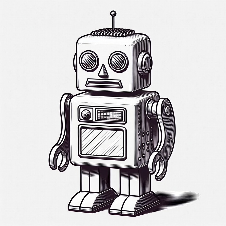 Vintage line art robot illustration