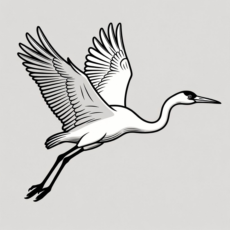 bird illustration, clipart, flying bird, flying egret, heron, isolated background, line art, long beak, long legs, simple illustration, vector art, white bird, white egret, wings spread, egret