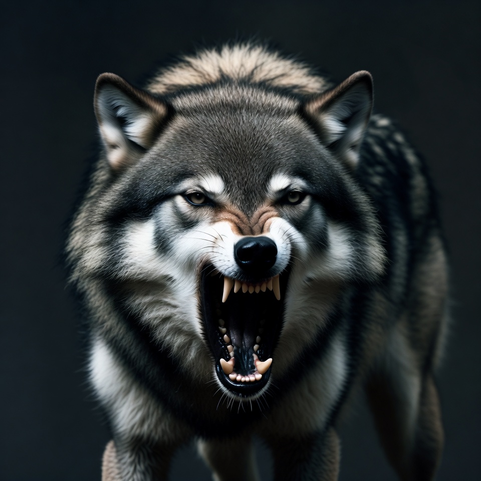 aggressive wolf, animal, canine, dark background, fangs, fierce wolf, fur, gray wolf, growling wolf, intense eyes, predator, sharp teeth, snarling wolf, timber wolf, wild animal, wildlife, wolf