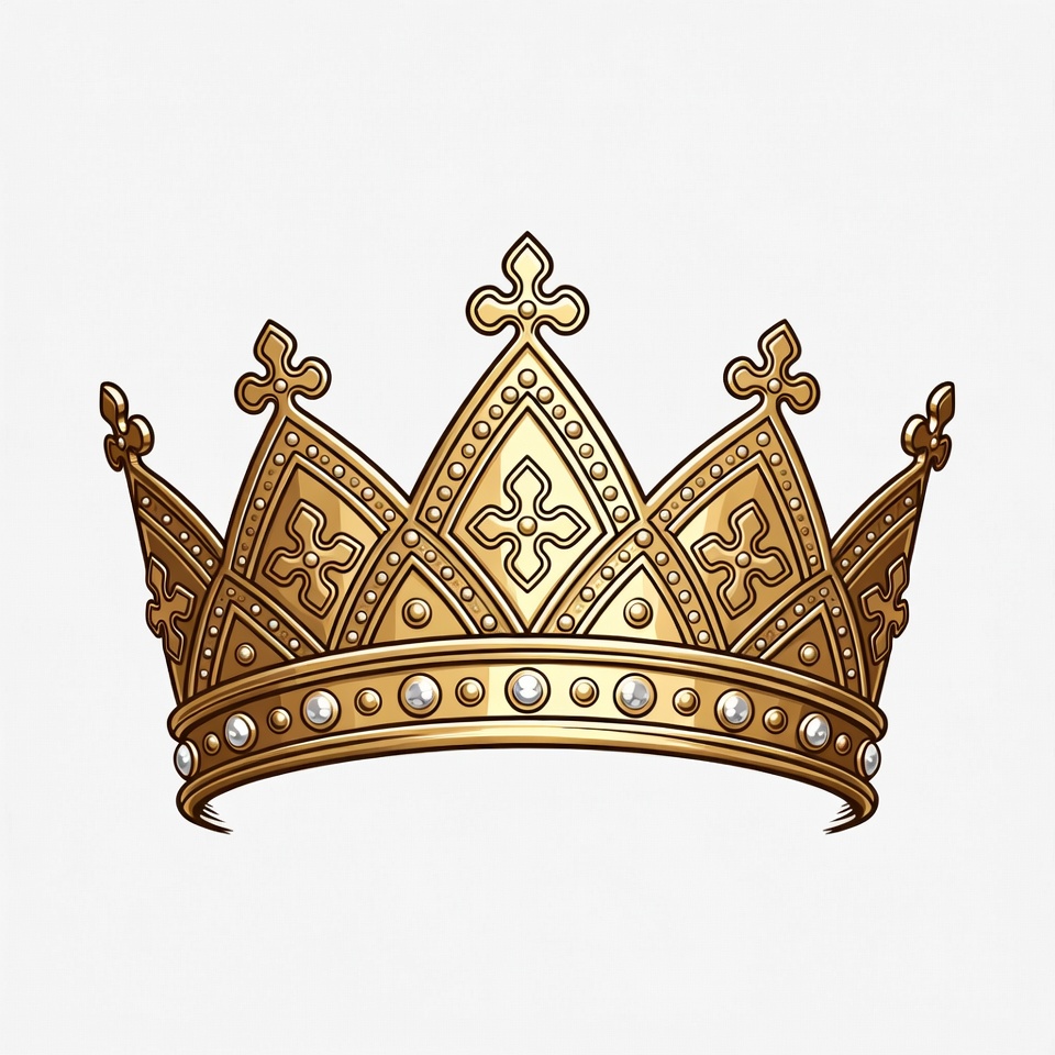 clipart, cross design, crown, filigree, gold, illustration, isolated background, jeweled crown, king crown, ornate crown, regal, royal crown, vector, white background, golden crown