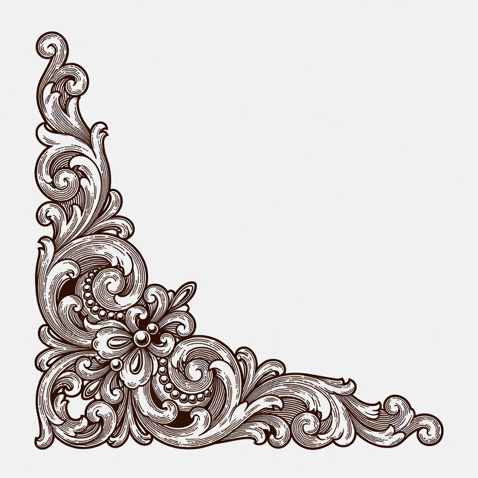 artistic frame, baroque style, clipart, decorative element, elegant border, engraving style, filigree, floral corner, floral design, flower ornament, graphic design, illustration, isolated background, ornate decoration, scrollwork, swirl pattern, vector art, vine motif, vintage border, corner border